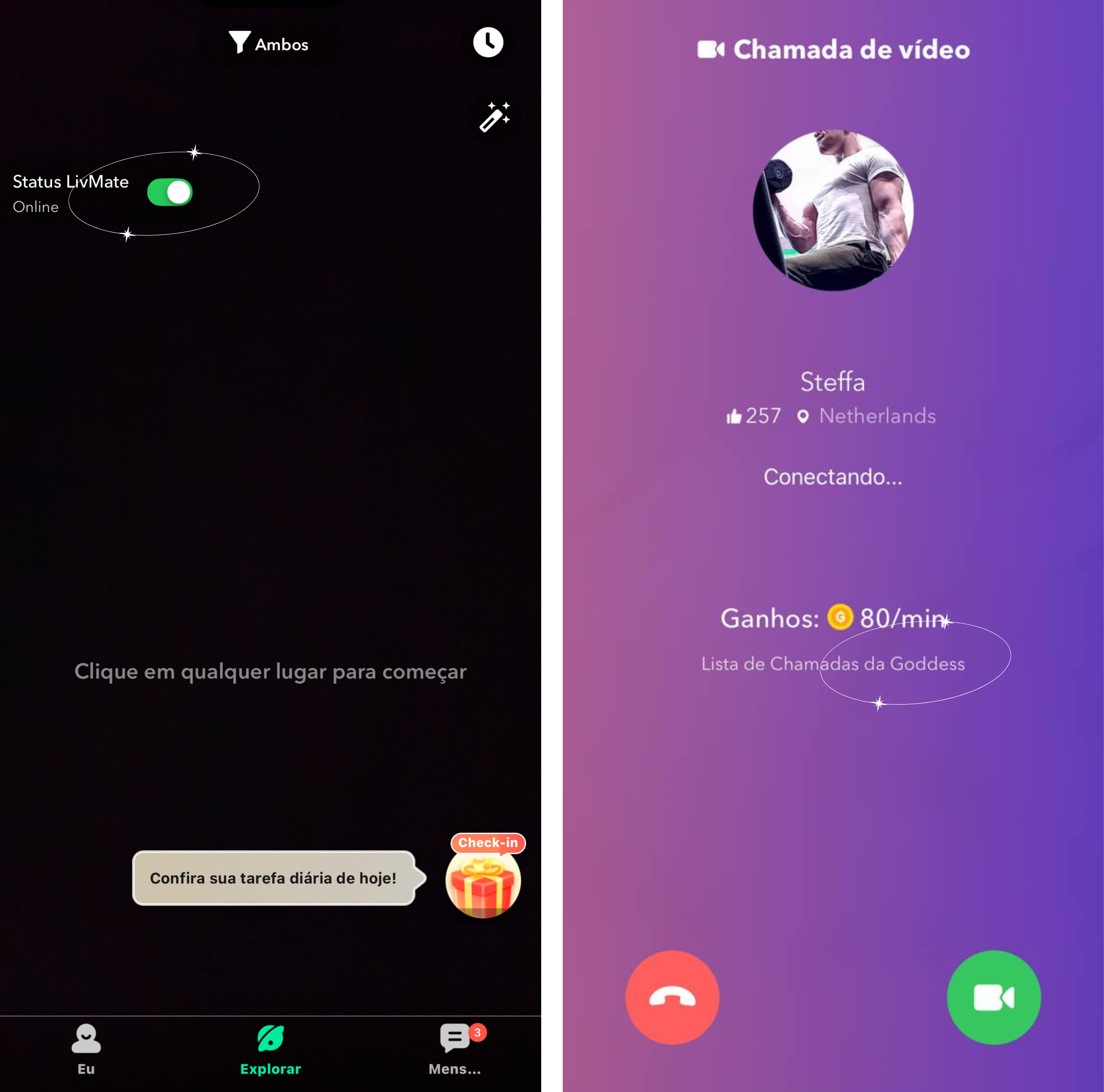 Também conhecida como “Chamada da Deusa”, é a chamada pública em que os usuários visualizam o seu perfil e ligam diretamente pra você.