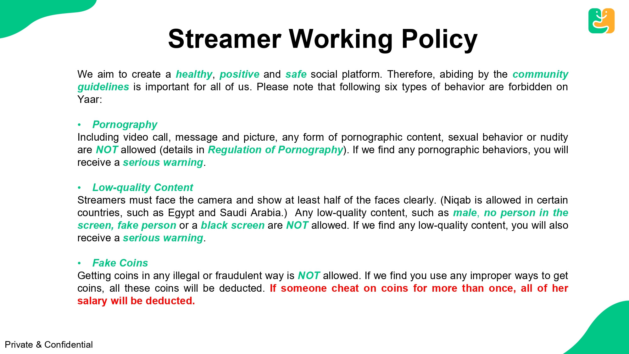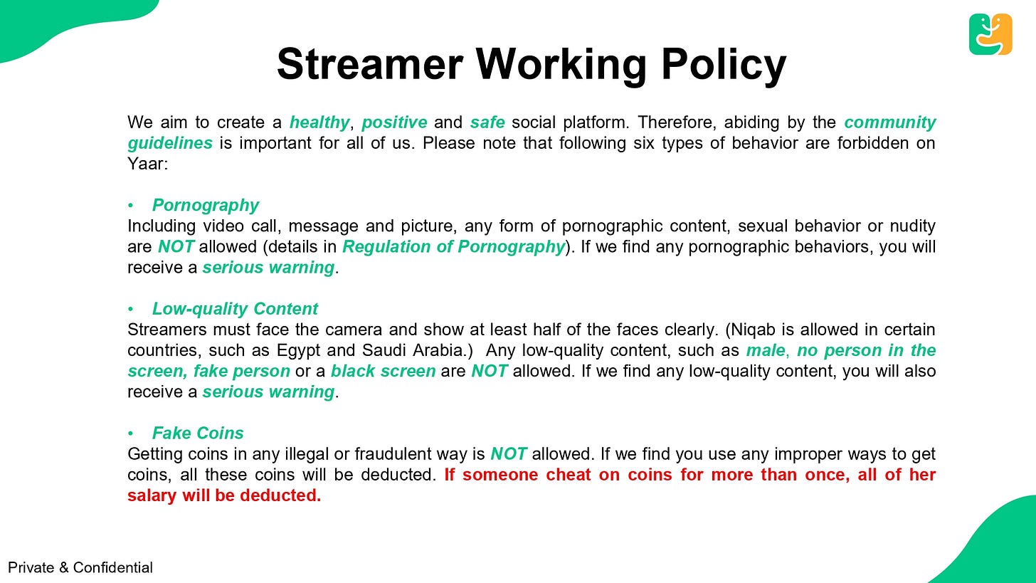 No Yaar, a host não pode sensualizar, não pode se mostrar, não pode dar nenhuma abertura pra um conteúdo mais adulto. Você tem que ser um anjinho na chamada! O app monitora todas as chamadas públicas e qualquer deslize pode te dar punição.