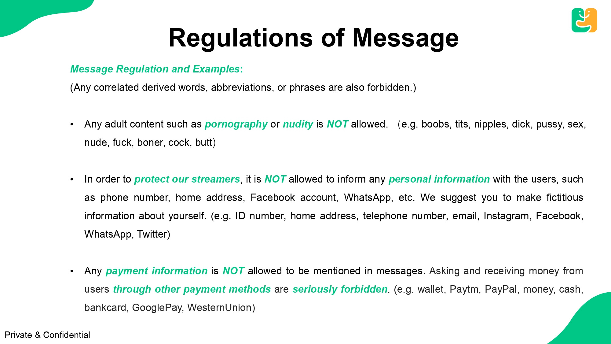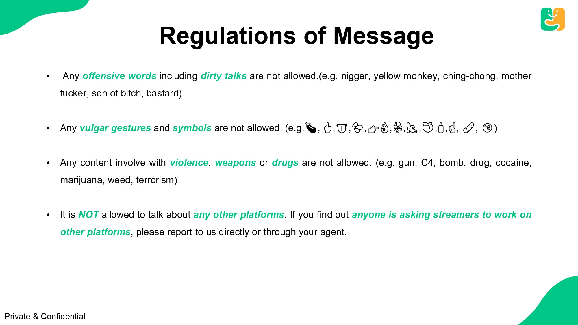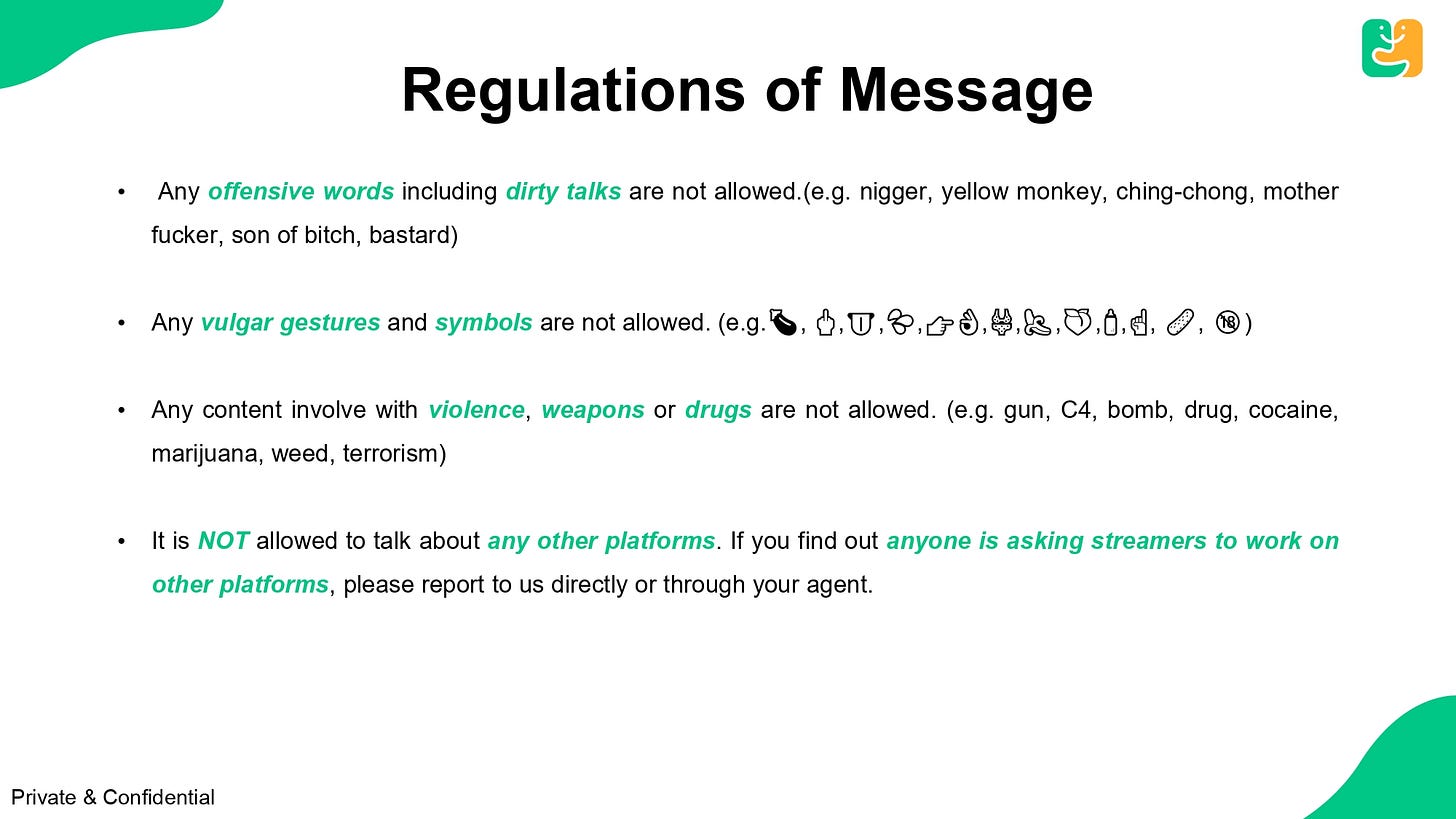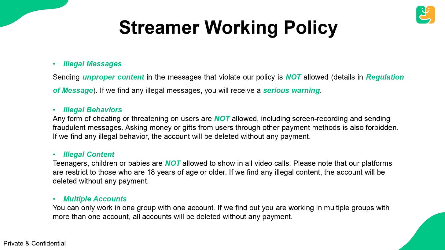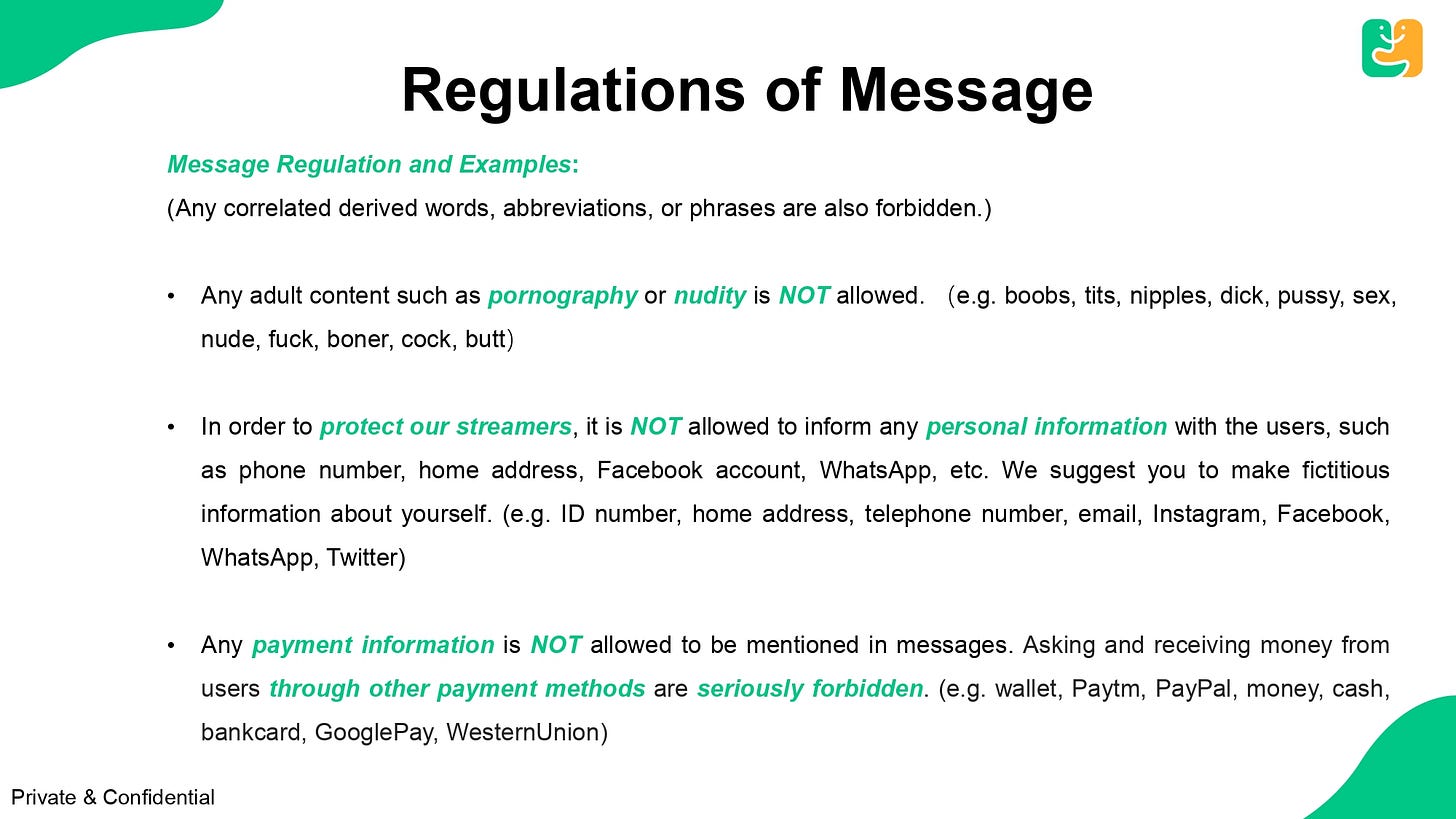 Hosts devem ter mais de 18 anos. Menores de idade não podem aparecer na câmera de jeito nenhum, ser mencionados ou usados como forma de atrair usuários;