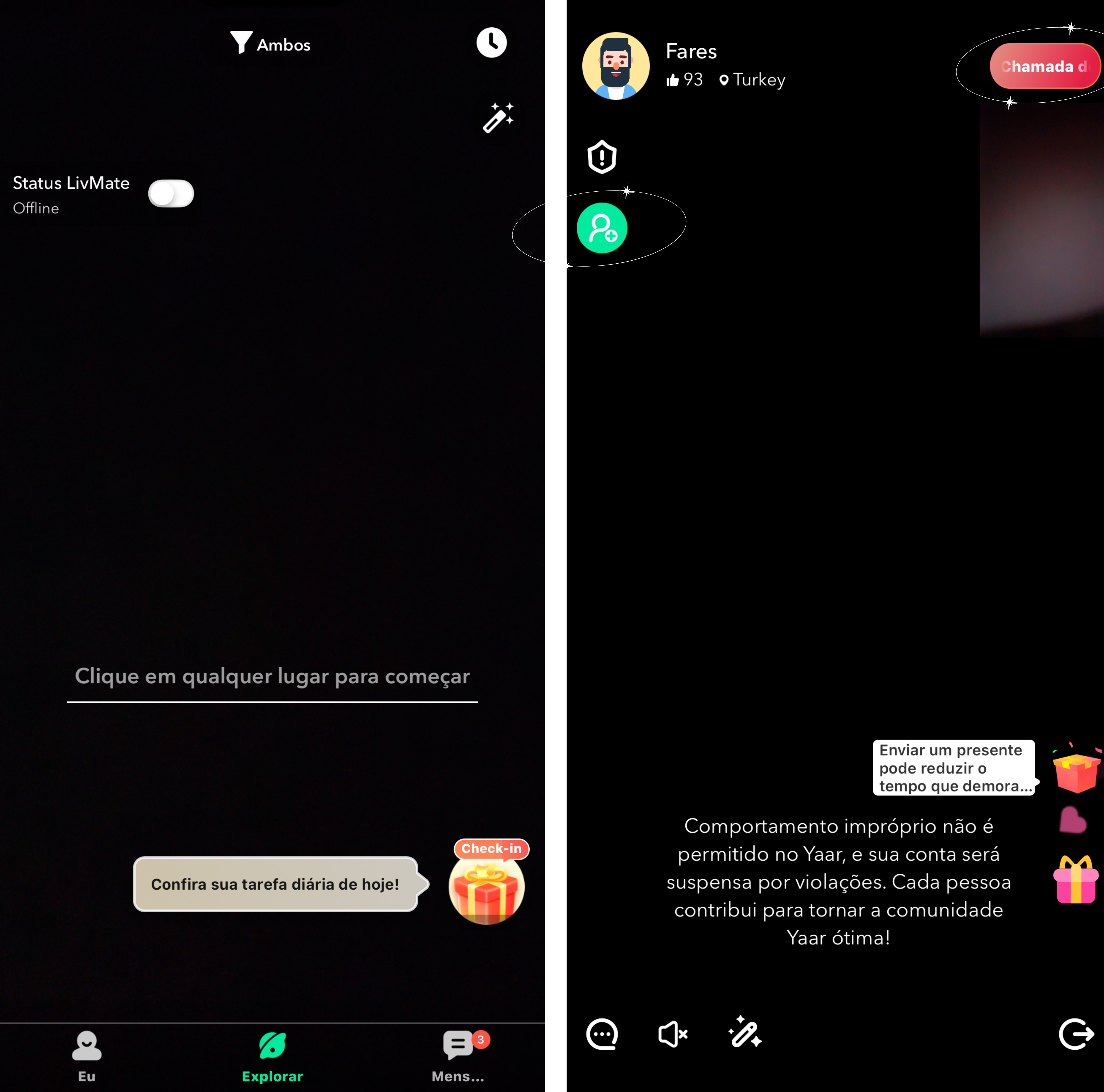 Esse aqui é, sem dúvidas, um dos pontos mais importantes desse post. O Yaar é, de longe, o app com as regras mais rígidas de todas! Eles fazem questão de repetir o tempo todo que o foco do app é amizades e conversas casuais, mas quem já entrou sabe que, na prática, pode ser um pouquinho diferente.