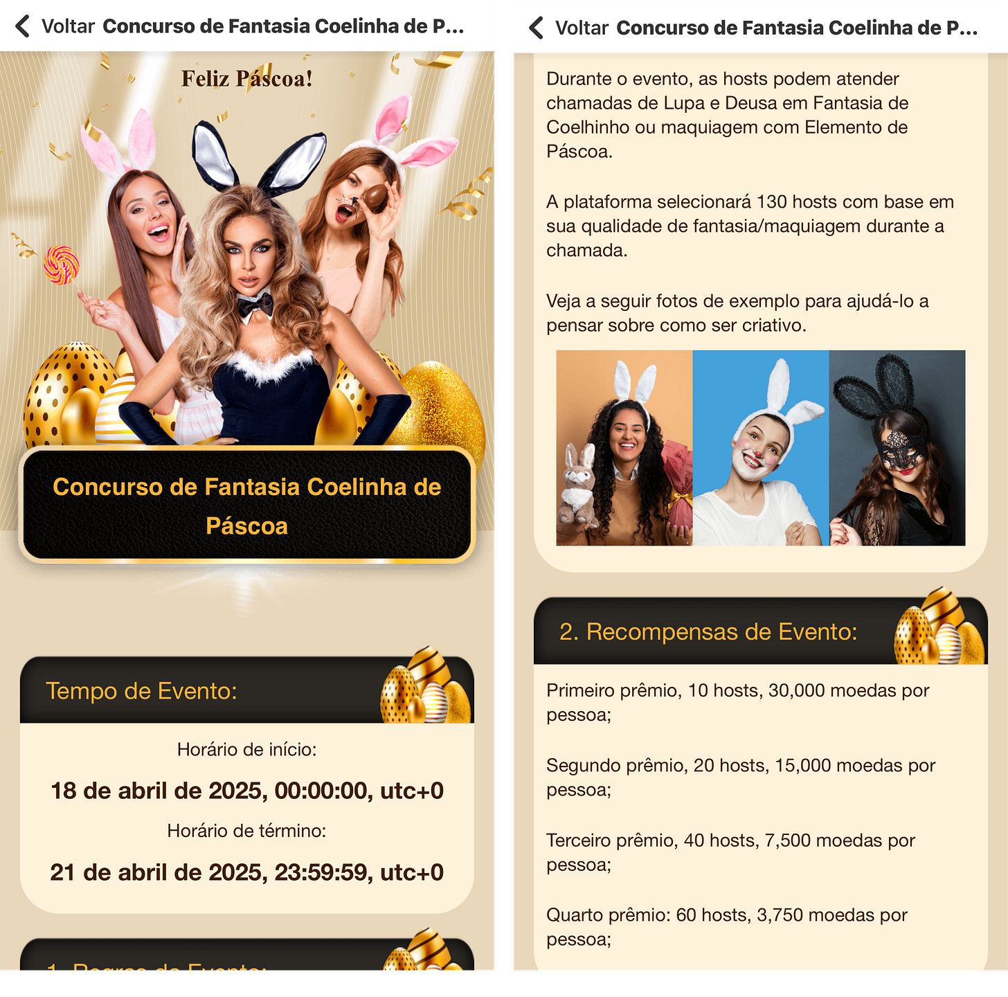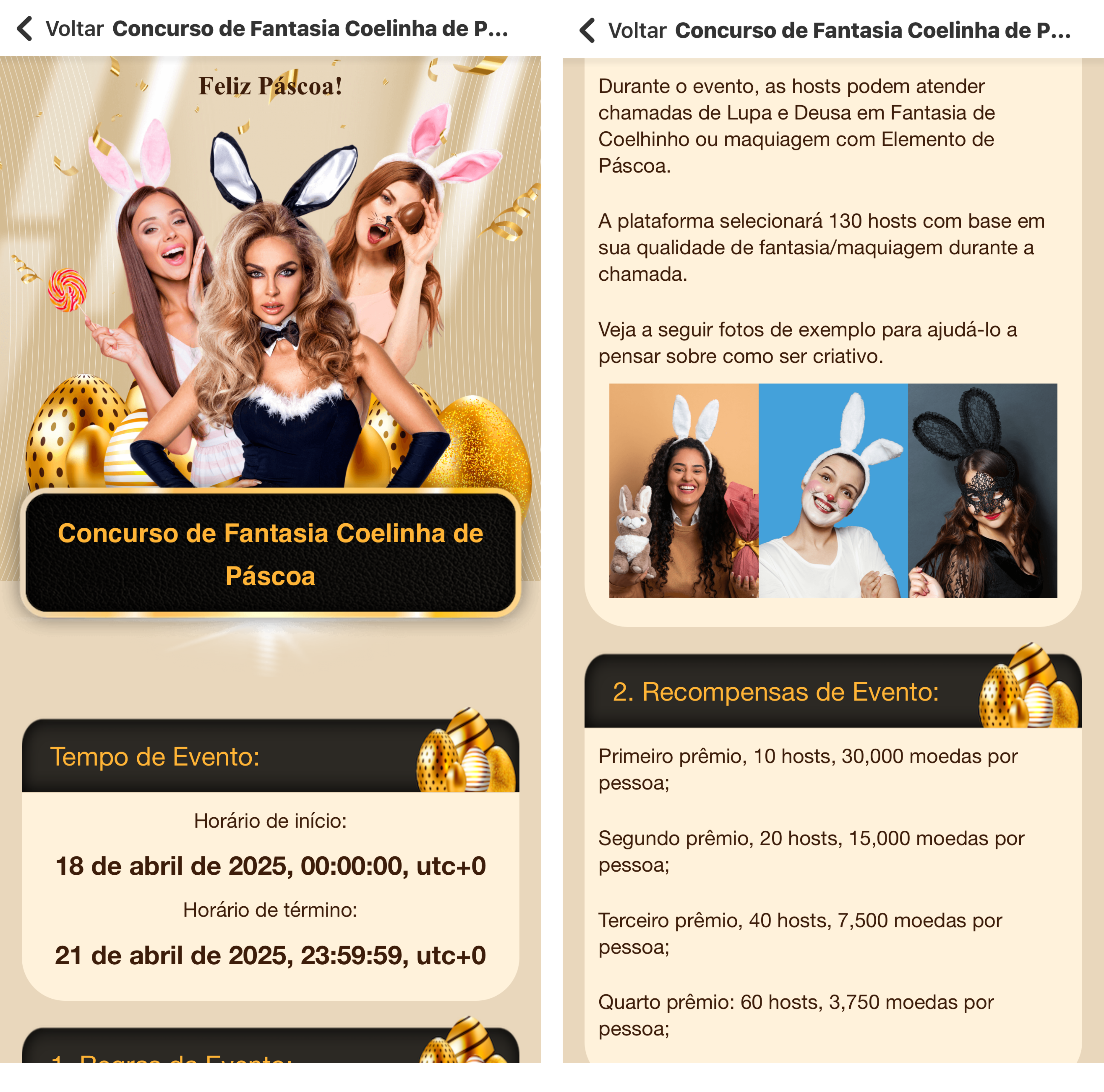 Em datas festivas como Natal, Páscoa, Halloween e outros, o app faz essas atividades com bonificações pras hosts. As que melhorem se saírem, são selecionadas pra receber o bônus;