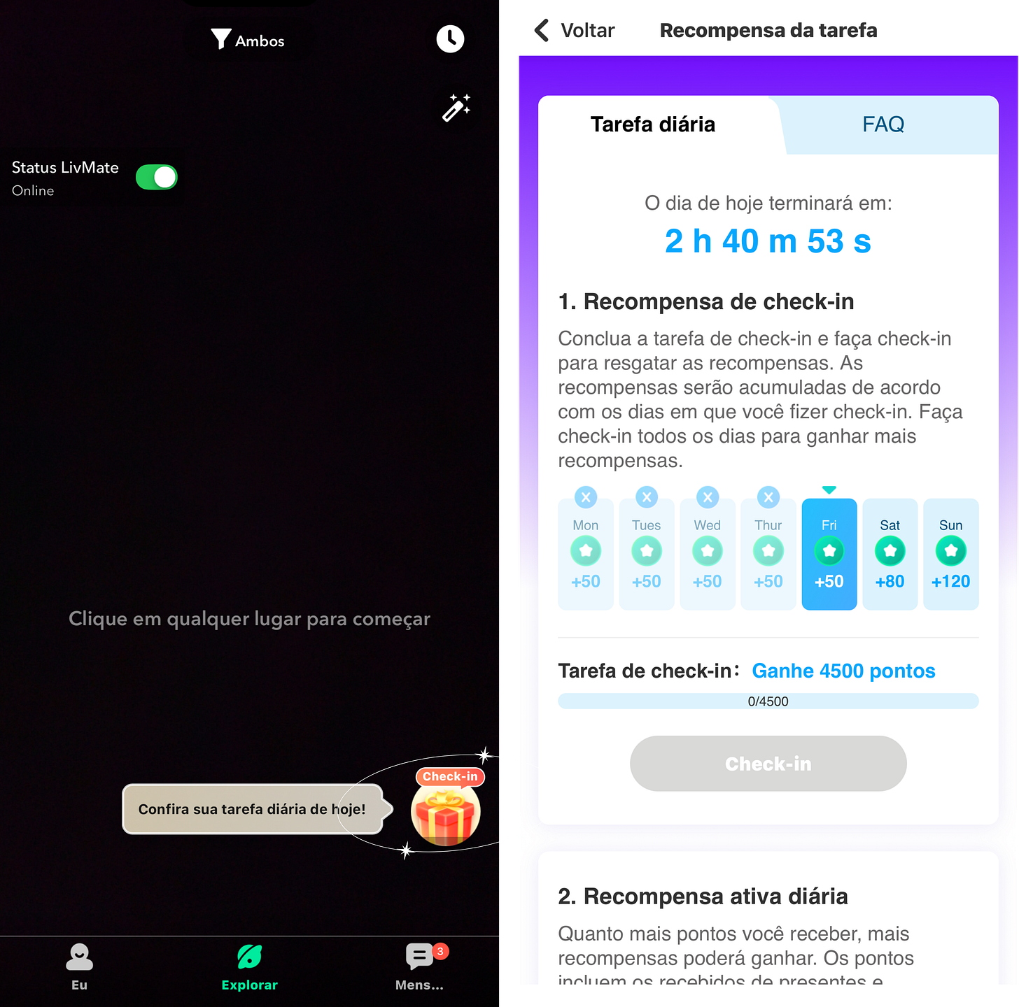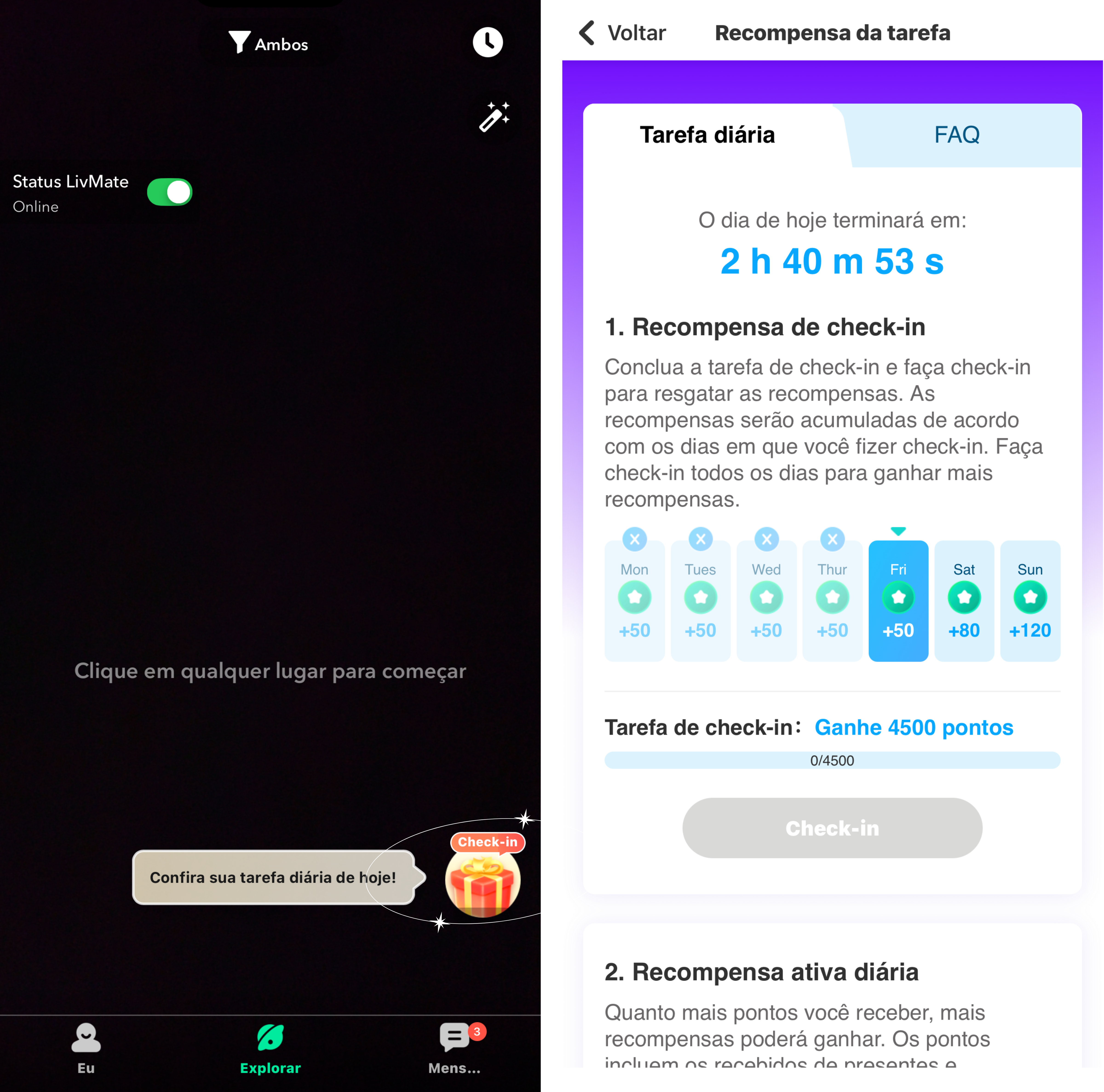 Esta é uma das melhores formas de engajar o seu perfil e aumentar os seus ganhos. Quanto melhor o seu engajamento, maior será o check-in e, assim, maior será o seu bônus!