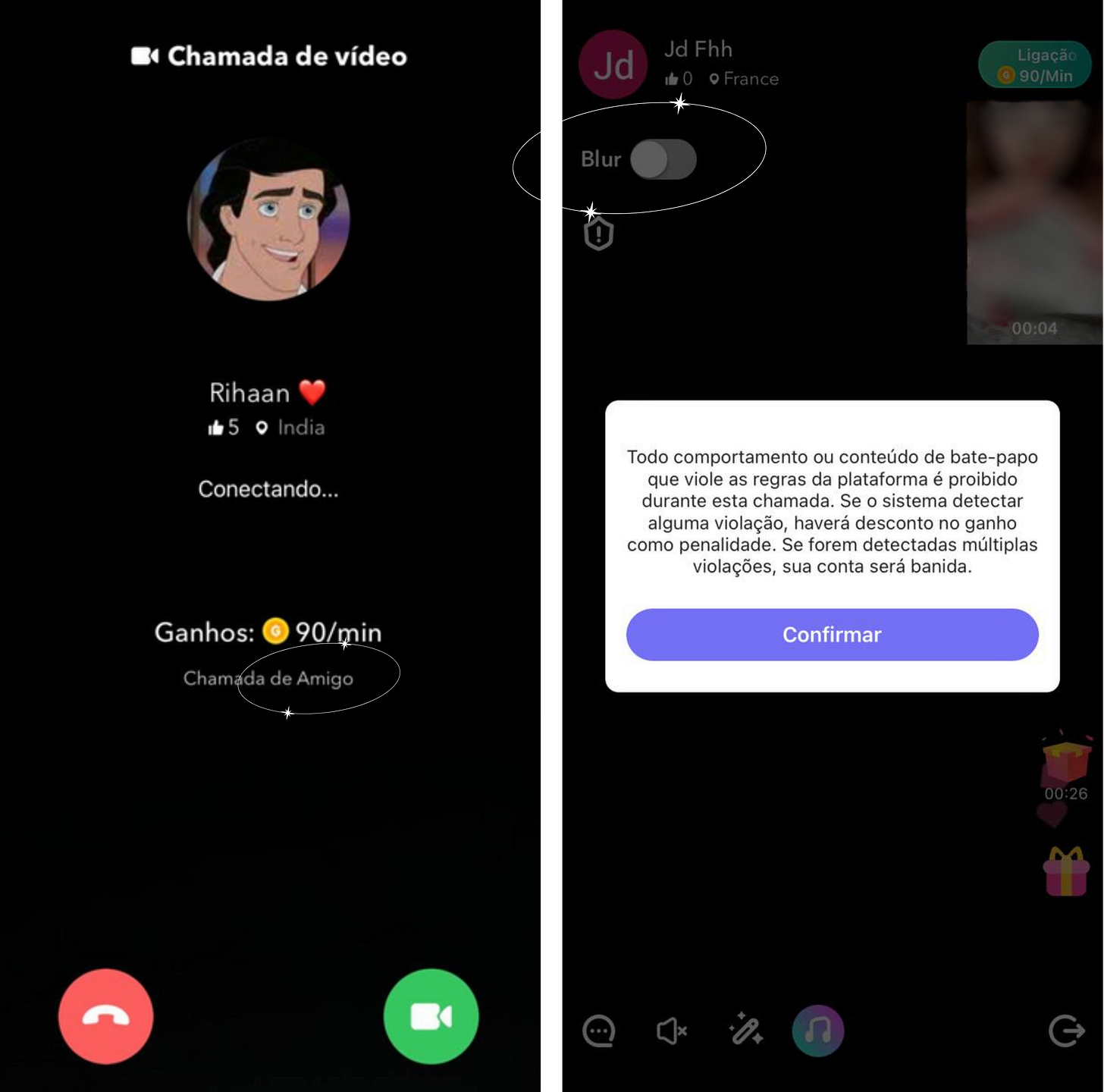 Não respeitar os 30 segundos obrigatórios nas Chamadas de Amigo. Nesse tipo de chamada, você só pode quebrar as regras (se mostrar, caso deseje) depois de 30 segundos – antes disso, tem que permanecer na câmera seguindo as regras;