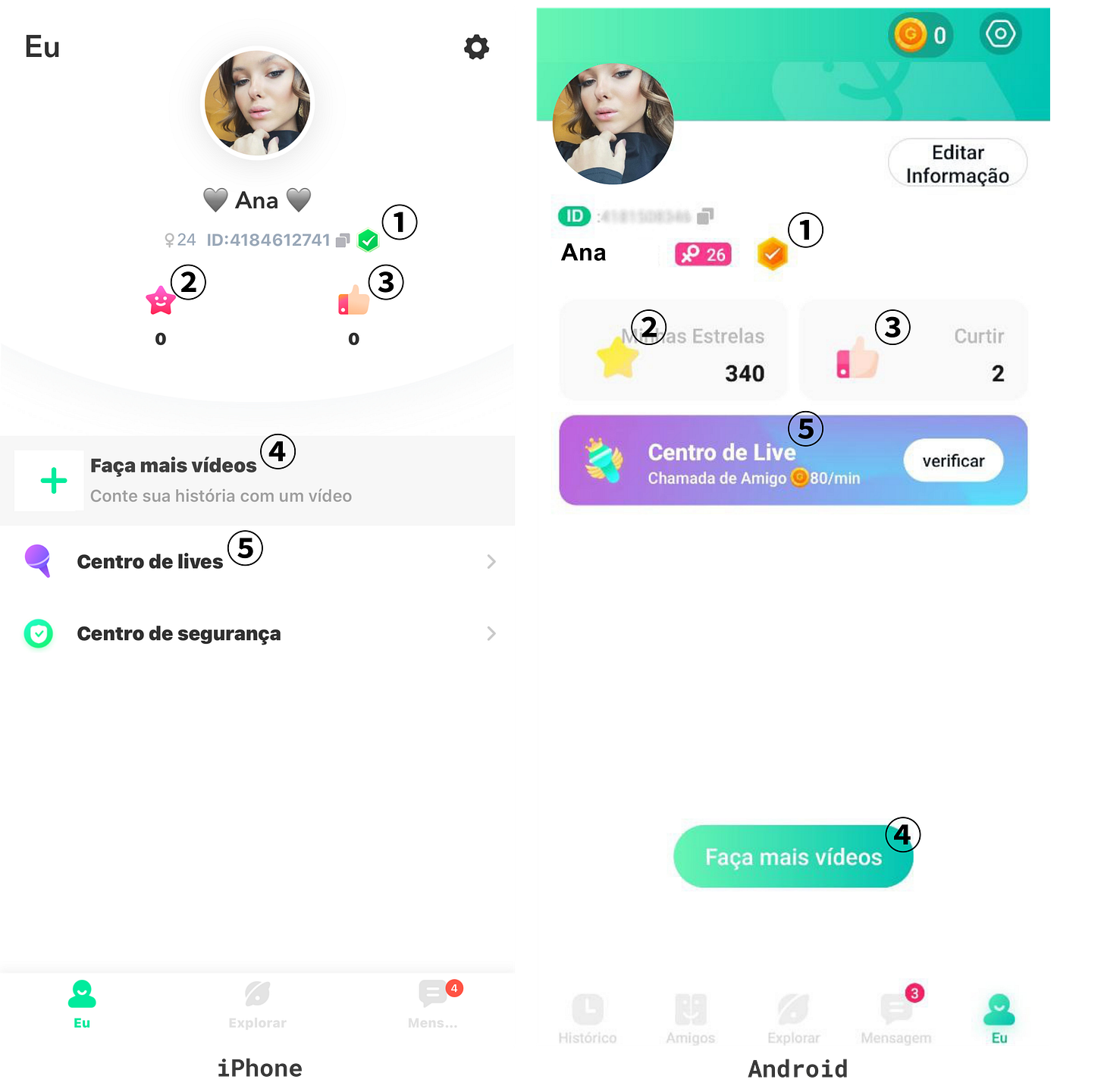 ③ Este “joinha” corresponde ao total de curtidas que seu perfil já recebeu no app também desde o seu primeiro dia de trabalho até o dia atual;