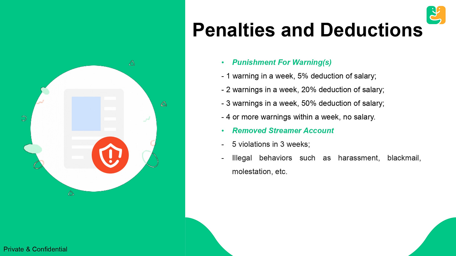 Essa é a regra geral, porém, receber violações não só diminui o seu salário mas afeta muito a reputação da agência em que você está. A maioria das agências dá 2 levas de violação por host – na primeira vez, você tem punição de salário e recebe uma notificação. Na segunda, elas te banem. Sem dó nem piedade.